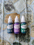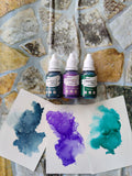 This is a set of three colors - Denim, Lavender, Teal! Each color comes in a 20 ml leak-proof bottle. These are the safest possible alcohol inks that are non-carcinogenic, uses plant based binders, and are ketone based making them non-irritating.
