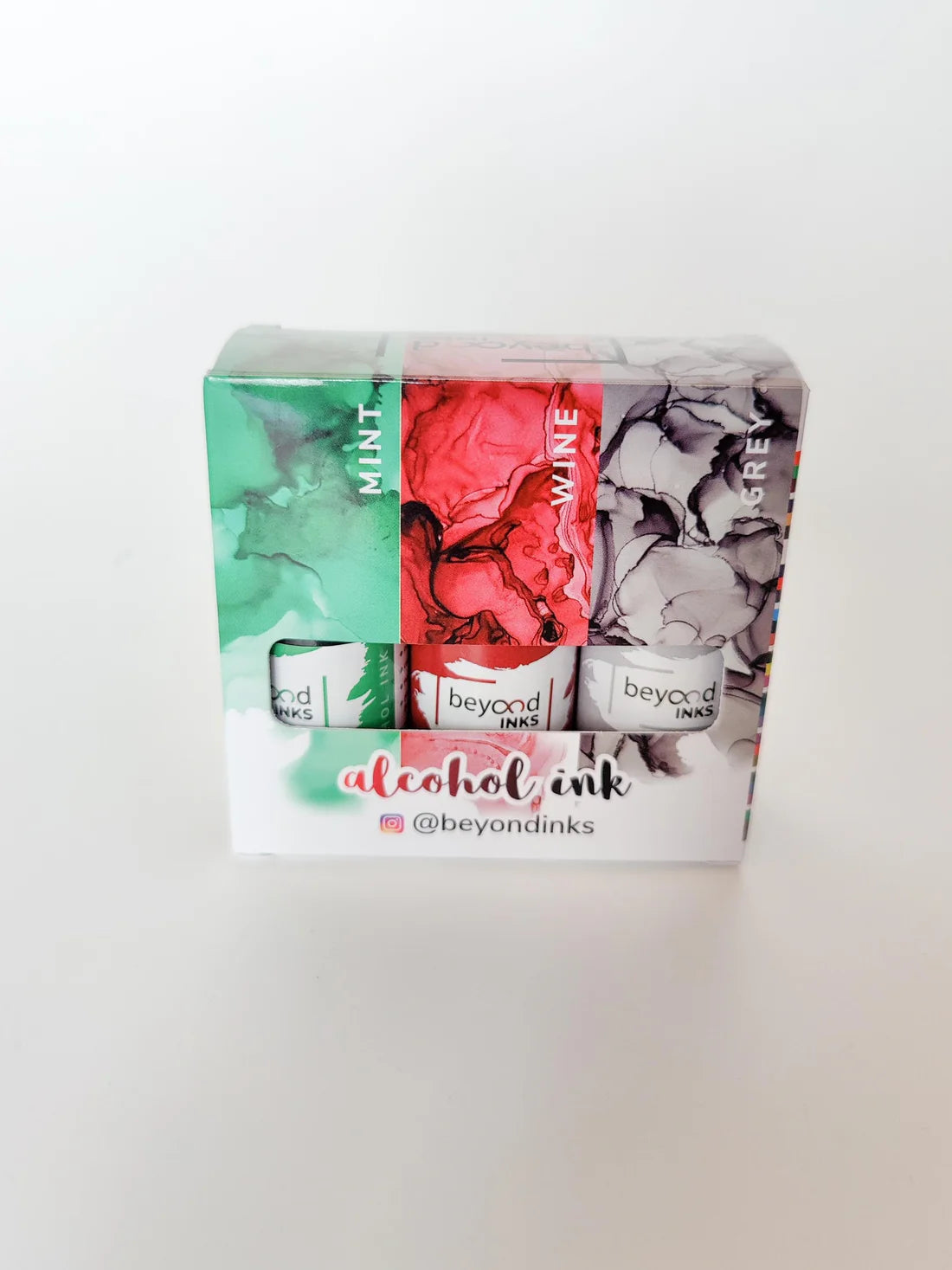 This is a set of three colors - Mint Green, Wine Red, & Grey! Every color comes in a 20 ml leak-proof bottle. These are the safest possible alcohol inks that are non-carcinogenic, uses plant based binders, and are ketone based making them non-irritating.