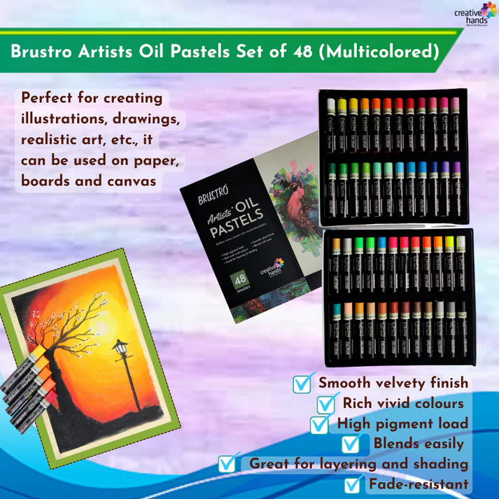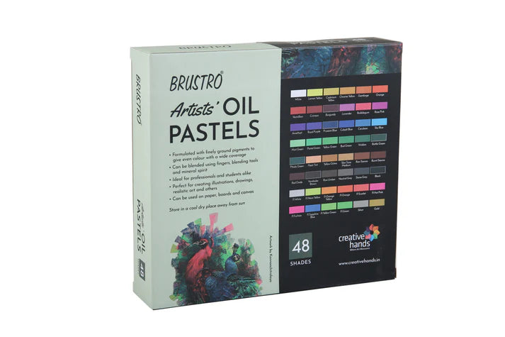 BRUSTRO Artists Oil Pastels | 48 Shades | Smooth, Multicolor, Intermixing, Bright and Intense Colours | Ideal for Students, Professionals, Non-Toxic, Safe for Childrens, School.