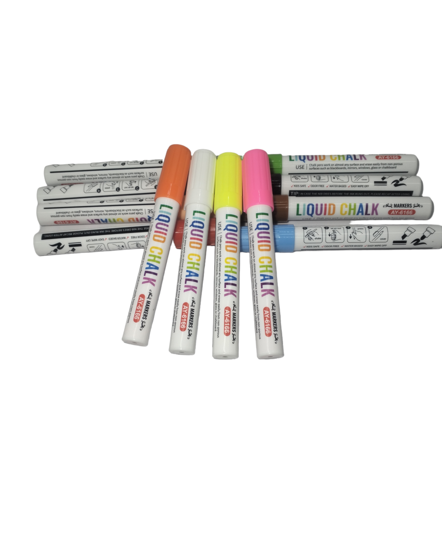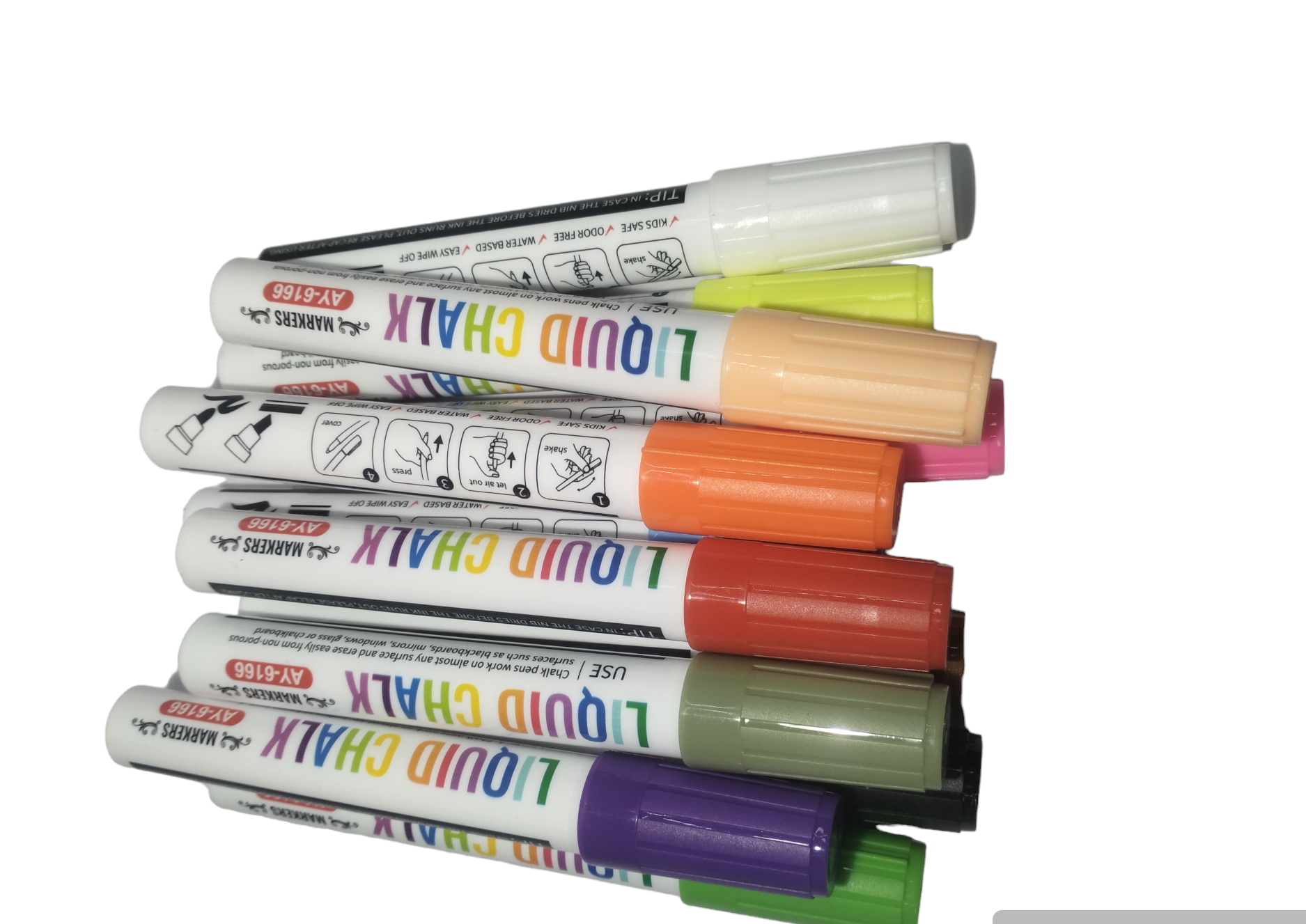 LIQUID CHALK NEON COLORS Chalk pens work on almost any surface and erase easily from non-porous surfaces such as blackboards, mirrors, windows, glass or chalkboard |